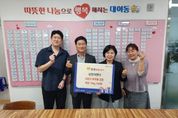경기호연뉴스 민선기 기자 | 시흥시 연성동 행정복지센터(동장 김상동)는 지난 10월 1일 원디자인 김원종 대표이자 연성동 지역사회보장협의체 위원이 지역 내 어려운 이웃을 위해 젤리 10상자를 후원했다고 밝혔다. 이번에 전달된 후원품은 관내 장애인시설에 배부됐으며, 연성동은 명절을 앞두고 시설을 방문해 안부를 묻고 애로사항을 청취했다. 시흥시 장애인 주간보호시설인 하나더하기 안덕희 대표는 “이렇게 매번 후원을 받기만 해도 되는지 모르겠다”라며 “명절 연휴 전에 시설을 이용하는 대상자들에게 잘 전달하겠다”라고 감사 인사를 전했다. 김상동 연성동장은 “지난번에 이어 다시 귀한 나눔을 실천해 준 김원종 대표에게 깊이 감사드린다”라며 “후원품은 명절을 맞은 장애인들에게 잘 전달하겠다”라고 말했다.