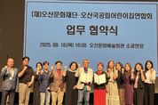 경기호연뉴스 민선기 기자 | 오산문화재단과 오산시국공립어린이집연합회는 지난 9월 18일 오산문화예술회관에서 지역 문화예술 활성화와 어린이 창의력 증진을 위한 업무협약을 체결했다. 이번 협약을 통해 양 기관은 ▲문화예술 프로그램 공동 개발 ▲어린이 대상 공연 및 체험 행사 확대 ▲지역 문화자원 연계 활동 등을 함께 추진할 예정이다. 협약식에 앞서 열린 차담회에서는 영·유아 대상 문화예술 프로그램의 방향성과 실현 가능성, 교직원 대상 혜택 제공 등 실질적인 협력 방안에 대해 심도 있는 논의가 이루어졌다. 신선교 오산문화재단 대표이사는 “이번 협약은 단순한 문서 체결을 넘어 실질적인 협력의 출발점”이라며 “아이들이 문화예술을 통해 감수성과 창의력을 키울 수 있도록 다양한 프로그램을 마련하겠다”고 말했다. 박은희 어린이집연합회 회장은 “보육 현장에 문화예술이 접목되어 아이들의 성장을 돕는 계기가 될 것”이라고 기대를 전했다. 현재 오산문화재단은 공연, 전시, 교육 등 다양한 프로그램으로 시민들의 문화 향유 기회를 확대하고 있으며, 오산시국공립어린이집연합회는 관내 국공립 어린이집의 협력과 발전을 이끄는 대표