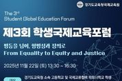 경기호연뉴스 민선기 기자 | 경기도교육청국제교육원이 22일 국내외 학생을 대상으로 ‘제3회 학생국제교육포럼’을 개최한다. 지난 2024년부터 시작된 ‘학생국제교육포럼’은 경기도 내 고등학교와 국제교류활동을 하고 있는 해외학교가 함께 참여하는 교류의 장(場)으로 올해는 한국 학생 44명과 일본·뉴질랜드·미국·베트남·필리핀·대만 등 해외 학생 33명이 참여한다. 올해 ‘학생국제교육포럼’의 주제는 ‘평등을 넘어, 형평성과 정의로(From Equality to Equity and Justice)’로 참가자들은 교육․디지털․건강․경제․문화와 인종 형평성 등에 대한 문제해결 가능성을 탐색한다. 포럼은 연세대 최영준 교수의 기조강연과 소주제별 활동 발표 및 강연자와의 토론으로 이어진다. 진행 방식은 실시간 쌍방향 원격프로그램을 통해 영어로 진행되며 유튜브를 통해 실시간 생중계된다. 박숙열 경기도교육청국제교육원장은 "이번 포럼은 국제교류활동을 하는 학교 간 소통과 네트워크 확대를 지원하고, 참가 학생들의 협력적 문제해결에 중점을 두었다”며 “앞으로도 다양한 문화적 배경의 학생들과 글로벌 문제에 대한