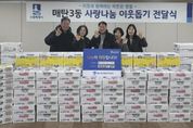 경기호연뉴스 민선기 기자 | 수원시 영통구 매탄3동은 지난 4일, 매탄중심상가상인회로부터 설 명절을 맞이해 관내 취약계층을 위한 라면 100박스와 햇반 110박스를 기탁받았다고 밝혔다. 이번 기탁은 설 명절을 앞두고 지역사회에 따뜻한 활력을 불어넣고, 이웃과 함께 정을 나누고자 하는 상인회 회원들의 자발적인 참여로 마련됐다. 기탁된 물품은 매탄3동 행정복지센터를 통해 기초생활수급 가구, 차상위 가구 등 저소득층 이웃들에게 전달되어, 모두가 풍성하고 든든한 명절을 보낼 수 있도록 지원될 예정이다. 정희경 매탄중심상가상인회장은 “설 명절만큼은 우리 주변의 어려운 이웃들이 소외되지 않고 따뜻한 정을 느끼며 든든하게 보내시길 바라는 마음으로 회원들과 정성을 모았다”며, “앞으로도 지역 상인들이 힘을 합쳐 주변을 살피고 나눔을 실천하는 활동에 적극 앞장서겠다”고 전했다. 김병목 매탄3동장은 “매년 명절마다 지역사회를 위한 나눔을 실천해 주시는 매탄중심상가상인회에 진심으로 감사드린다”며 “기탁해 주신 물품은 상인분들의 따뜻한 마음과 함께 관내 어려운 이웃들에게 소중히 전달하겠다”고 감사의 뜻을 전했다. 한편