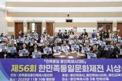 경기호연뉴스 민선기 기자 | 용인특례시는 10일 시청 컨벤션홀에서 민족통일 용인특례시협의회 주관으로 ‘민족통일 용인특례시대회와 제56회 한민족통일문화제전 시상식’이 열렸다고 밝혔다. 이날 행사는 한반도의 평화와 통일을 주제로 한 글짓기·웹툰·포스터·사진 공모전의 입상작을 시상하고, 유공회원에게 표창을 수여하고자 마련됐다. 민족통일 용인특례시협의회는 1981년 창립한 단체로 매년 태극기 나눔을 비롯해 지역사회 통일운동 의식 제고 등을 위한 다양한 활동을 벌이고 있다. 이날 협의회는 홍보자료 시청, 통일 관련 동영상과 남북 언어 차이에 대한 학습자료를 시청하고 간단한 통일 퀴즈대회를 거쳐 우수 작품 3개를 낭독했다. 이어진 시상식에서는 용인특례시장상 3명 등 총 36명이 수상의 영예를 안았다. 유한종 민족통일 용인특례시협의회장은 “민족의 염원인 한반도 평화통일을 위해 어려운 여건 속에서도 적극 지원해 주시는 이상일 시장님께 감사드린다”며 “대한민국 통일의 그 날이 올 때까지 협의회 회원의 뜻을 한데 모아 더욱 적극 활동하겠다”고 했다. 이상일 시장은 “대한민국이 한국전쟁의 비극