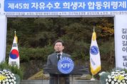 경기호연뉴스 민선기 기자 | 이상일 용인특례시장은 6일 처인구 양지면 대대리 ‘자유수호희생자위령탑’에서 열린 제45회 자유수호희생자 합동위령제에 참석해 희생자들을 추모했다. 이날 행사엔 이상일 시장을 비롯한 박창무 한국자유총연맹 용인시지회장 등 지역 내 단체 관계자와 시민 50여 명이 참석했다. 행사는 희생자를 기리기 위한 추도 의식, 추념사·추도사, 조가 연주와 제창, 진혼무, 헌화 순으로 진행됐다. 이상일 시장은 추도사에서 “고대부터 자유는 인간에게 가장 중요한 가치로 자유를 얻지 못하면 우리는 평등해질 수가 없다”며 “선배 세대들이 목숨을 바치면서 자유를 지켜낸 모습만 봐도 자유는 그냥 얻어진 것이 아니다”라고 강조했다. 이 시장은 “우리가 매년 위령제를 지내는 것은 1990년 9월 21일 희생당하신 분들의 고귀한 넋을 우리가 면면히 잘 이어받아 선배 세대가 소중하게 지킨 이 나라를 더욱더 발전시켜 후배 세대들에게 물려주기 위함이라고 생각한다”며 “호국영령의 넋이 하늘나라에서도 늘 평안을 누리시길 기원드린다”고 했다. 자유수호희생자위령탑은 1950년 9월 21일 용인·화성·수원 등지에서 끌려와