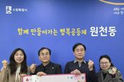 경기호연뉴스 민선기 기자 | 지난 17일 경기중앙지방법무사회 수원지부는 원천동 저소득 지역주민들을 돕기 위해 성금 100만 원을 원천동행정복지센터(동장 김선혁)에 후원했다. 이번에 전달된 성금은 경제적 어려움을 겪고 있는 원천동 저소득 지역주민들을 위해 사용될 예정으로, 지역사회 나눔 문화 확산에 기여할 것으로 기대된다. 경기중앙지방법무사회 수원지부 관계자는 “작은 정성이지만 지역 내 어려운 이웃들에게 도움이 되길 바란다”며 “앞으로도 지역사회와 함께하는 다양한 나눔 활동을 지속해 나가겠다”고 밝혔다. 김선혁 원천동장은 “어려운 이웃을 위한 따뜻한 나눔에 깊이 감사드린다”며 “후원금은 도움이 꼭 필요한 저소득 주민들을 위해 소중히 사용하겠다”고 전했다. 한편, 경기중앙지방법무사회 수원지부는 매년 꾸준히 성금을 전달하여 지역사회 복지 증진을 위해 힘쓰고 있다.