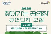 경기호연뉴스 민선기 기자 | (재)화성시문화관광재단은 1월 12일부터 1월 23일까지 ‘2026 찾아가는공연장’ 참여 공연단체를 모집한다고 밝혔다. ‘찾아가는 공연장’은 화성시의 곳곳에서 다양한 장르의 공연을 제공함으로써 시민들의 일상적인 문화예술 관람을 돕기 위한 사업으로, 2009년부터 시작된 화성시문화관광재단의 대표 문화사업 중 하나다. 지난 2025년도에는 공개 모집을 통해 40개의 공연단체를 선정했으며, 문화취약계층에 방문공연, 공원 광장 거리공연 등을 통해 다양한 장르의 공연으로 화성시민과 함께했다. ‘2026 찾아가는 공연장’은 약 140회차의 공연을 목표로 운영된다. 이번 공연단체 모집은 3년 이상의 공연활동 경력이 있는 공연단체라면 지역, 장르에 상관없이 신청가능하다. 접수는 1월 12일부터 23일까지 온라인으로만 가능하며, 1차 서류‧영상 심사, 2월 9일~10일 2차 실연‧면담 심사를 거쳐 2월 12일에 최종 선정단체 총 35팀을 발표할 예정이다. 화성시문화관광재단 안필연 대표이사는 “지역과 장르의 제한을 두지 않는 만큼, 화성시 곳곳에서 재능을 뽐내줄 다양한 예술 공연단체들의 많은 관심과