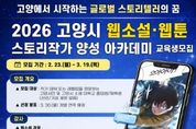 경기호연뉴스 민선기 기자 | 고양산업진흥원이 웹콘텐츠 산업을 이끌어갈 스토리 전문 인재 발굴을 위한 ‘2026 고양시 웹소설·웹툰 스토리작가 양성 아카데미’ 교육생을 모집한다. 이번 교육과정은 진흥원과 스토리 콘텐츠 분야 전문가들로 구성된 한국만화스토리협회와 협업해, 고양시 작가 지망생들의 데뷔를 목표로 이도경, 김양수, 송향희 등 현역 작가들이 다양한 창작 노하우를 공유할 예정이다. 스토리 작가 데뷔에 관심 있는 고양시민, 고양시 소재 대학교 재학생·졸업생을 대상으로 하며, 오는 3월 19일까지 이메일로 신청하면 된다. 교육은 4월 10일부터 매주 금요일 총 10회에 걸쳐 진행되며, 자세한 내용은 포스터 내 QR코드 또는 진흥원 누리집에서 확인할 수 있다. 진흥원은 웹툰·웹소설 등 부가가치가 큰 웹콘텐츠 IP를 발굴하고, 우수한 창작 인재 양성을 위한 교육 사업을 추진하고 있다. 특히 ‘IP융복합 콘텐츠 클러스터’조성을 통해 고양시 특화 웹콘텐츠 산업을 지속적으로 육성해 나갈 계획이다.