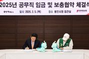 경기호연뉴스 민선기 기자 | 용인특례시는 5일 시청 접견실에서 시 소속 공무직 근로자를 대표하는 전국민주연합노동조합 용인지부와 ‘2025년 공무직 임금·보충 협약’을 체결했다고 밝혔다. 이날 체결식에는 이상일 시장과 최승덕 전국민주연합노동조합 용인지부장을 비롯한 노사 교섭위원 10여 명이 참석했다. 이번 협약에는 ▲직종별 기본급 3.2~3.7% 차등 인상 ▲국내 문화체험 제도 신설 ▲질병·육아휴직 복직자의 휴가권 확대 ▲생일 휴가 신설 등 근로 여건과 복지 수준을 개선하는 사항이 포함됐다. 노사 양측은 지난해 4월 24일 제1차 본교섭을 시작으로 본교섭 13회, 실무교섭 7회 등 총 20차례에 걸친 협의를 통해 올해 1월 잠정 합의안을 도출했다. 노조는 지난달 28일 조합원 찬반투표를 거쳐 협약을 최종 확정했다. 이번 협약에 따른 임금 인상분은 2025년 근무분에 대해 소급 적용된다. 이상일 시장은 “시의 어려운 사정을 헤아려 주고 협상을 잘 마무리해 주신 데 대해 감사드린다”며 “앞으로 시의 재정 여건이 점차 나아지게 될텐데, 여러분이 하고 있는 일들을 더 적극적으로 응원하고 지원하겠