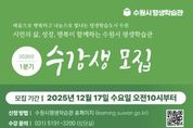 경기호연뉴스 민선기 기자 | 수원시평생학습관이 12월 17일 오전 10시부터 2026년 1분기 수강생을 모집한다. 1월부터 3월까지 운영되는 1분기 강좌는 ▲첨단미래기술 프로그램 ▲디지털 지식정보 프로그램 ▲생활문화 프로그램 ▲교양 프로그램 ▲인문 프로그램 ▲기관 협력 재능기부 프로그램 ▲거북이공방 프로그램 ▲대상별 맞춤프로그램 ▲시민교육 프로그램 ▲언제든학교 시민기획 프로그램 ▲무지한스승의만남 시민참여기획 프로그램 등 총 11개 과정, 115개 세부 강좌로 구성됐다. 첨단미래 기술 프로그램을 강화했다. 인공지능(AI) 기술에 초점을 둔 첨단미래기술 프로그램, 성균관대학교 지능로봇리빙랩과의 협업을 통한 자율주행 실습, 가상현실(VR)드론 시뮬레이션 체험 등이 있다. 또 글쓰기, 사주명리학, 한글 서예, 현대미술, 명화감상, 뮤지컬 등을 주제로 한 교양 프로그램과 중장년, 시니어, 제2의 인생설계, 청소년 등을 대상으로 하는 대상별 맞춤 프로그램을 마련했다. 수원시는 새빛톡톡 시민 설문조사를 활용해 2026년 강사를 공개 모집했고, ▲생활문화 프로그램 ▲디지털 지식정보 프로그램 ▲대상별 맞춤프로그램