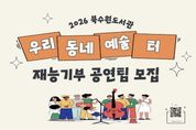 경기호연뉴스 민선기 기자 | 북수원·대추골·일월도서관은 시민 참여 문화공연 ‘우리동네 예술 터’에 참여할 재능기부 공연팀을 4월 30일까지 모집한다. 모집 대상은 수원시 예술 동아리와 단체, 예술인으로 개인과 단체 모두 신청할 수 있다. 모집 분야는 ▲음악 ▲무용 ▲연극 등 다양한 장르의 공연이며, 지역 주민과 함께 나눌 수 있는 재능기부 형태의 공연이어야 한다. 정치적·종교적·영리 목적의 공연은 제외한다. 선정된 공연팀은 5월부터 12월까지 북수원·대추골·일월도서관 강당 등에서 공연할 수 있으며, 도서관은 공연 공간을 제공한다. 수원시 관계자는 “이번 사업은 이웃의 재능을 나누며 도서관을 소통의 공간으로 만드는 데 의미가 있다”며 “지역 예술인에게는 무대를, 시민에게는 문화 향유 기회를 제공하는 만큼 많은 참여를 바란다”고 말했다.