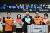 경기호연뉴스 민선기 기자 | 광명소방서는 11월 4일 오후 4시, 광명소방서 2층 소회의실에서 (주)글로벌이지스, 광명희망나기운동본부와 함께 사회공헌 기탁식을 진행했다고 밝혔다. 이번 기탁식은 겨울철 소방안전대책의 일환으로 추진되는 ‘화재취약계층 전기화재 예방사업’의 일환으로 마련됐다. 이날 글로벌이지스는 전기 과부하로 인한 화재를 초기에 차단할 수 있는 자동소화멀티탭(엘리펀탭) 312개를 광명희망나기운동본부를 통해 기탁했으며, 기탁 물품은 겨울철 화재위험이 높은 취약계층 가정에 순차적으로 전달될 예정이다. 특히, 전기화재 예방 제품을 개발해 온 글로벌이지스와 지역 복지안전망 역할을 수행 중인 광명희망나기운동본부가 함께한 이번 협력은 민간기업과 공공기관이 힘을 모아 시민의 안전을 지키는 뜻깊은 사례로 평가된다. 행사에는 이종충 광명소방서장을 비롯해 윤혜빈 글로벌이지스 본부장, 이세열 광명희망나기운동본부 본부장 등 관계자 20여 명이 참석했고, 참석자들은 기탁식 이후 취약계층 주거환경 개선과 전기화재 예방을 위한 협력 방안을 논의했다. 이종충 서장은 “지역 기업과 복지협의회의 따뜻한 나눔이 시민의 생