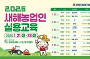 경기호연뉴스 민선기 기자 | 안성시는 2026년 새해농업인 실용교육을 1월 21일부터 28일까지 6일간 총 12과목을 운영한다고 밝혔다. 이번 새해농업인 실용교육은 2026년 농업기술센터 전반적인 사업을 원익재 소장이 직접 강의하는 농정시책강의를 시작으로 서동남 농업지도과장의 농경지 토양관리 특강 등 새해 영농 설계에 필요한 과목으로 구성됐다. 교육은 오전 강의(9시30분~11시30분), 오후 강의(13시30분~17시30분)으로 구성되며 재배기술 10과목(▲토양관리 ▲벼 ▲잡곡 ▲미생물 ▲한우 ▲고추 ▲마늘,양파 ▲대추 ▲포도 ▲배)과 농업정책 2과목(▲농업시책 ▲로컬푸드)을 진행한다. 접수는 당일 현장에서 접수하는 방식으로 진행되고 안성시민, 안성시 귀농예정자(타시군시민 가능) 누구나 수강이 가능하며, 교재는 선착순으로 배부한다. 서동남 과장은 “2026년 새해농업인 실용교육을 통해 새해 영농설계에 도움이 될 수 있도록 과목을 구성했다.”며 “새해 영농시책 및 기후변화에 대응한 재배기술 등 실질적 도움이 될 수 있는 강의로 준비했으니 많은 참여 부탁드린다.”고 말했다.