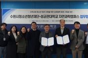 경기호연뉴스 민선기 기자 | 수원시청소년청년재단은 11일 성균관대학교 자연과학캠퍼스와 청소년ㆍ청년의 취‧창업 지원과 전인적 성장을 위한 업무협약(MOU)을 체결했다고 밝혔다. 이번 협약을 통해 양 기관은 △대학생 연계사업 활성화를 위한 지속적인 교류활동 추진 및 내실화 △청소년의 진로 탐색을 위한 멘토링 및 학과 탐방 기회 제공 △기타 상호 협력이 필요하다고 인정되는 분야에서의 협조 체계를 구축할 예정이다. 재단 관계자는 "이번 협약이 단순한 형식적 절차에 머무르지 않고 우리 청소년‧청년들에게 새로운 경험과 지속적인 성장의 기회를 제공하는 중요한 출발점이 되기를 희망한다"며, "협약의 성공적인 이행을 위해 상호 긴밀하게 협력해 나갈 것"이라고 밝혔다.
