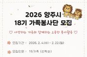 경기호연뉴스 민선기 기자 | 양주시자원봉사센터는 가족이 함께 참여하는 자원봉사 활동을 통해 건강한 가족문화를 조성하고 지역사회 나눔을 실천하기 위해 가족 단위로 함께 참여하는 ‘18기 가족봉사단’을 모집한다고 밝혔다. 모집대상은 양주시에 거주하는 2인 이상 가족으로 월 1회 정기적인 봉사활동 참여가 가능한 가족이며 총 15가족을 선착순 모집한다. 가족봉사단은 부모와 자녀가 함께 봉사활동에 참여하며 생활 속 나눔을 실천하는 참여형 프로그램으로 단순한 봉사활동을 넘어 가족 간 소통과 협력을 통해 유대감을 높이고 공동체 의식을 함양하는 데 목적이 있다. 제 18기 가족봉사단은 3월 발대식을 시작으로 ▲환경정화 활동 ▲계절별 나눔 활동 ▲재난안전체험 ▲시설봉사활동 ▲고구마경작활동 ▲시 축제 홍보부스 운영 등 매월 셋째 주 토요일마다 월·테마별 활동에 참여할 예정이다. 양주시자원봉사센터 이정주 센터장은 “가족이 함께 봉사활동에 참여하는 경험은 자녀에게 나눔의 가치를 자연스럽게 전달하고, 가족 간 유대감을 강화하는 계기가 된다.”며 “지역사회에 따뜻한 변화를 만들어갈 가족들의 많은 관심과 참여를 바란다.”고