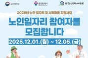 경기호연뉴스 민선기 기자 | 용인특례시는 12월 1일부터 5일까지 ‘2026년 노인 일자리 및 사회활동 지원사업’ 참여자를 모집한다. 시는 어르신 일자리사업에 269억원을 투입해 5884명의 일자리를 마련했다. 내년 노인일자리 사업은 4개 유형 101개 사업으로 ▲노인공익활동사업 3413명(월 30시간 활동·29만원 지급) ▲노인역량활용사업 1626명(월 60시간 활동·63만 4000원 지급) ▲공동체사업 615명(근무시간과 급여는 근로계약에 따름) ▲취업지원(취업알선형)230명(근무시간과 급여는 근로계약에 따름)을 모집한다. 노인공익활동사업의 대상은 65세 이상 어르신 중 기초연금수급자나 직역연금수급자다. 노인역량활용사업은 65세 이상(일부 사업은 60세 이상)의 어르신이며, 공동체사업단 및 취업지원(취업알선형)은 60세 이상의 어르신이 참여할 수 있다. 다만 국민기초생활보장법에 따른 ▲생계급여 수급자 ▲건강보험 직장가입자 ▲장기요양보험 등급 판정자 ▲다른 기관의 일자리사업 참여자는 신청 대상에서 제외된다. 사업에 참여를 희망하는 어르신은 신분증과 3개월 이내에 발급한 주민등록등본 등