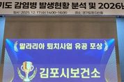 경기호연뉴스 민선기 기자 | 김포시보건소는 경기도가 실시한 ‘2025년 말라리아 퇴치사업 유공 평가’에서 우수기관으로 선정되며 8년 연속 수상하는 성과를 이어갔다. 김포시는 최근 3년간 환자 발생 양상과 지역별 특성을 분석해 맞춤형 환자 관리 체계와 홍보전략을 구축하고, 이를 기반으로 ‘말라리아 집중관리사업(FOCI)’을 적극 추진했다. 이러한 현장 중심 대응 강화로 환자 수는 전년 대비 약 20% 감소하는 성과를 거두었다. 주요 성과로는 △말라리아 진단가능 의료기관 대폭 확대(337.0% 증가) △지역밀착형(마을회관, 산업체 등) 예방 교육 및 신속진단검사 시행 △주말, 야간을 활용한 고위험 다중이용시설(낚시터, 캠핑장, 산책로 등) 홍보 △방역지리정보시스템(GIS) 기반 지역·시기별 맞춤형 방제 추진 등이 있다. 김포시보건소 관계자는 “말라리아로부터 시민의 안전을 지키기 위해 근거 기반의 예방·관리 체계를 더욱 강화하고, 지역사회의 협력을 바탕으로 건강한 김포를 만들어가겠다”고 밝혔다.
