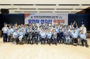 경기호연뉴스 민선기 기자 | 오산시장애인체육회는 ‘제16회 경기도장애인체육대회 2026 광주’에 참가하는 오산시 선수단 출정식을 지난 10일 오산오색문화체육센터에서 개최했다고 밝혔다. 이날 출정식에는 이권재 오산시장을 비롯해 시의원, 장애유형별 단체장, 종목별 가맹단체장 및 임원 등 내빈과 선수단 등 130여 명이 참석해 선수들의 사기를 북돋우고 선전을 다짐했다. 오산시 선수단은 이번 대회에 당구, 론볼, 배드민턴, 보치아, 볼링, 역도, 조정, 탁구, 파크골프, 육상, 수영 등 11개 종목에 총 75명이 참가해 그동안 갈고닦은 기량을 펼칠 예정이다. 출정식은 개회선언을 시작으로 격려사와 축사, 선수단 소개, 단기 수여, 선수대표 선서, 필승구호 제창, 후원기금 및 격려금 전달 순으로 진행됐다. 특히 선수대표는 정정당당한 경기와 최선을 다하는 자세로 임할 것을 다짐하며 선수단의 결의를 다졌다. 이권재 오산시장은 “힘든 훈련을 이겨내고 이 자리에 선 선수들이 자랑스럽다”며 “부상 없이 안전에 유의해 최고의 기량을 발휘하고 돌아오길 바란다”고 격려했다. 한편, ‘제16회 경기도장애인체육대회
