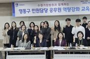 경기호연뉴스 민선기 기자 | 수원시 영통구는 지난 25일, 영통구청 상황실에서 구청 및 12개 동 민원 담당 공무원을 대상으로 수원가정법원과 함께하는 역량 강화 교육을 실시했다. 이날 특별 초빙된 수원가정법원 박민숙 사무관과 유신임 행정관은 갈수록 복잡하고 다양해지는 가족관계등록사무를 개념부터 관련 법령까지 체계적으로 교육했으며, 업무처리 시 유용한 노하우 공유, 질의응답 등의 시간도 마련했다. 특히 실무에서 자주 접하는 기본적이고 중요한 사례 중심으로 민원 담당자들이 이해하기 쉽게 교육을 통해 실무의 어려움을 해소하고, 신속하고 정확한 업무 처리에 대한 자신감을 높였다. 장수석 영통구청장은“가족관계등록부는 국민의 신분과 정체성을 증명하는 유일한 공적 자료로, 직원들의 전문성 부족이 시민들의 불편으로 이어지지 않도록 수원가정법원과 함께 민원담당 공무원의 역량 강화에 최선을 다하겠다”고 밝혔다. 영통구는 앞으로도 직원들의 전문성과 자신감을 강화하여 수준 높은 민원행정 서비스를 실현해 나갈 계획이다.