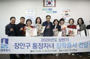 경기호연뉴스 민선기 기자 | 수원시 장안구는 지난 25일, 지역 사회 발전을 위해 행정 최일선에서 헌신하고 있는 통장들의 노고를 격려하기 위해 ‘2026년 상반기 통장자녀 장학증서 전달식’을 개최했다고 밝혔다. 이번 장학증서 전달식에는 이일희 장안구청장을 비롯해 고윤기 장안구 통장협의회 회장과 장학생 자녀가 선발된 통장 등 12명이 참석했다. 2026년 상반기 장학금은 지역 내 모범적인 통장 자녀 10명에게 총 950만원이 지급되며, 이날 행사에는 학업 일정 등으로 바쁜 자녀들을 대신해 부모인 통장들이 직접 참석하여 구청장으로부터 장학증서를 수여받고 동료 통장들과 기쁨을 함께 나누는 뜻깊은 시간으로 진행됐다. 이일희 장안구청장은 “주민들을 위해 묵묵히 땀 흘리시는 통장님들의 헌신과 봉사가 있었기에 지금의 장안구가 존재할 수 있었다”며 “오늘 전달된 장학금이 자녀들의 꿈을 향한 힘찬 발걸음에 작은 밑거름이 되기를 바란다”고 말했다. 한편, 장안구 통장자녀 장학금은 구정 발전에 기여해 온 통장들의 사기를 진작하고, 그 자녀들이 지역 사회를 이끌어갈 우수한 인재로 성장할 수 있도록 돕기 위해 매년 상·하