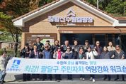경기호연뉴스 민선기 기자 | 수원시 팔달구 주민자치협의회는 지난 28일, 수원특례시와 경북 봉화군이 의기투합하여 만들어 낸 청량산 수원캠핑장에서 20여명의 팔달구 주민자치위원들과 워크숍을 진행했다. 김웅진 팔달구 주민자치협의회 회장은 “지난 22일 개장한 청량산 수원캠핑장에 팔달구 주민자치위원들과 오게 되어 정말 뜻깊다. 아름다운 대자연 속에서 맑은 공기를 마시며 걷다 보니, 우리 지역 주민자치 성장에 활용할 아이디어를 저절로 얻게 됐다. 일상 속 주민에게 도움이 되는 다양한 사업을 발굴할 수 있도록 최선을 다하겠다.”고 말했다. 이상균 팔달구청장은 “항상 주민자치 현장에서 답을 찾고, 살기좋은 팔달구를 만들기 위해 애써주시는 주민자치협의회에 깊은 감사를 드린다. 상생협력 모델로 성공적으로 출발한 청량산 수원캠핑장처럼 팔달구에 적용할 수 있는 사업을 발굴해주시길 부탁드린다.”며 “팔달구도 또한 주민의 힘으로 빛나는 마을, 팔달구가 되도록 적극적인 지원을 아끼지 않겠다.”라고 말했다. 팔달구는 이번 워크숍을 계기로 다가오는 2026년 주민자치회 운영 내실화를 다지는 동시에 주민이 체감하는 문제해결 공동체 사업,