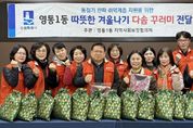 경기호연뉴스 민선기 기자 | 영통1동 지역사회보장협의체는 지난 22일 겨울철 한파에 취약한 독거노인의 건강과 안전을 위해 관내 독거노인 15명을 대상으로 기모 실내복 세트와 핫팩을 전달하고 안부를 살피는 나눔 활동을 진행했다. 이번 지원은 추운 겨울을 홀로 보내는 어르신들이 조금이나마 따뜻하고 건강하게 겨울을 날 수 있도록 돕기 위해 마련됐으며, 협의체 위원들은 각 가정을 방문해 물품을 전달하고 생활 불편 사항과 건강 상태를 직접 확인했다. 김가희 지역사회보장협의체 민간위원장은 “작은 나눔이지만 어르신들께서 따뜻한 겨울을 보내는 데 도움이 되길 바란다”며 “앞으로도 지역 내 취약계층을 위한 지속적인 관심과 지원을 이어가겠다”고 전했다. 신한길 영통1동장은“추운 겨울일수록 이웃의 관심과 돌봄이 더욱 중요하다”며 “이번 나눔을 통해 어르신들께서 조금이나마 따뜻함과 위로를 느끼시길 바라고, 앞으로도 주민 모두가 함께하는 따뜻한 지역사회를 만들기 위해 최선을 다하겠다”고 말했다.