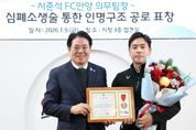 경기호연뉴스 민선기 기자 | 안양시민프로축구단 FC안양의 서준석 의무팀장이 위급한 상황에서 신속한 심폐소생술로 시민의 생명을 구한 공로로 안양시장 표창을 받았다. 안양시는 9일 오후 4시10분 시청 3층 접견실에서 표창 수여식을 열고 서 팀장에게 표창을 수여했다. 서 팀장은 지난해 12월 26일 안양종합운동장 인근에서 점심식사를 하던 중 식당 앞에서 심정지로 쓰러진 시민을 발견하고 즉각 심폐소생술(CPR)을 실시했으며, 구조대가 도착할 때까지 침착하게 응급조치를 이어가 소중한 생명을 구하는 데 결정적인 역할을 했다. 2014년부터 FC안양에 재직 중인 서 팀장은 평소 선수단의 건강과 안전을 책임지는 의료지원 업무를 수행해 왔으며, 이번 위급한 상황에서도 전문성과 사명감을 바탕으로 인명 구조에 나서 사회에 귀감이 되는 행동을 보여줬다. 서 팀장은 “현장에서 함께 신고하고 도움을 준 동료들 덕분에 소중한 생명을 지킬 수 있었다”며 “앞으로도 그라운드 안에서는 선수들의 건강을, 그라운드 밖에서는 시민의 생명을 지키는 데 최선을 다하겠다”고 소감을 밝혔다. 최대호 안양시장은 “갑작스러운 상황에