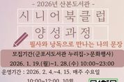 경기호연뉴스 민선기 기자 | 군포시산본도서관은 2026년에도 관내 시니어들에게 책을 통해 서로 소통하고 공감하는 능동적 독서교육 프로그램인 ‘시니어 북클럽 양성 과정’을 운영한다고 밝혔다. 이번 교육은 2월 4일부터 4월 15일까지 매주 수요일 오전 10시부터 12시까지 총 10주차로 진행되며 북클럽 운영을 위한 운영법, 글쓰기 방법, 주제도서의 낭독과 필사 등에 대해 교육하여 시니어 독서동아리로 자발적인 활동을 할 수 있도록 실전교육 위주로 진행된다. 산본도서관에서 2025년도에 ‘낭독과 필사로 떠나는 글쓰기 여행’ 수업을 맡았던 최선화 강사가 진행하며 도서관은 교육 기간 중, 신규 시니어 독서동아리를 모집 및 결성하여 지속적인 독서 모임 활동을 지원할 계획이다. 함께 글쓰기 및 독서에 관심있는 관내 55세 이상 시니어라면 누구나 신청 가능하며, 1월 19일부터 선착순으로 20명을 모집한다. 신청은 군포시도서관누리집 문화행사신청 또는 전화 접수가 가능하다. 하은호 군포시장은 “앞으로 산본도서관이 시니어 세대가 책으로 하나 되는 소통공간이 될 수 있도록 다양한 독서교육 프로그램을 운영하겠다”라며 “