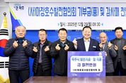 경기호연뉴스 민선기 기자 | 파주시는 ㈔마장호수발전협의회이 지난 29일 파주시 마을 발전과 저소득 등 취약계층을 위한 쌀 200포를 포함해 7천만 원 상당의 기부금(품)을 전달했다고 밝혔다. 이날 기탁식에서는 김경일 파주시장과 ㈔마장호수발전협의회 남종희 이사장 및 관계자들이 참석해 지역사회의 나눔 가치 실현과 상호 협력 의지를 확인했다. ㈔마장호수발전협의회는 파주시 마장호수 내에 있는 전망대 카페와 매점을 공유재산 사용·수익 허가를 받아 운영하고 있으며, 이번에 전달된 성금과 물품은 해당 시설 운영을 통해 얻은 수익을 지역사회에 환원하기 위해 마련됐다. 그동안 ㈔마장호수발전협의회는 지역사회의 일원으로서 책임을 다하기 위해 꾸준히 노력해 왔다. 남종희 ㈔마장호수발전협의회 이사장은 “사회적 가치를 실현하고 지역 주민들과 함께 성장하는 것이 조합의 중요한 역할”이라며, “이번 기부를 계기로 파주시민의 복지 향상에 힘을 보태겠다”라고 말했다. 김경일 파주시장은 “어려운 경제 여건 속에서도 이웃을 위해 따뜻한 손길을 내밀어 주신 ㈔마장호수발전협의회에 깊이 감사드린다”라며, “기탁해 주신 쌀과 성금은 시민 생