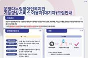 경기호연뉴스 민선기 기자 | 파주시 운정다누림장애인복지관은 지역 내 장애인의 기능 향상과 일상생활 능력 증진을 위해 ‘기능향상서비스’참여자를 오는 23일부터 상시 모집한다. 모집 대상은 주민등록등본상 파주시에 거주하는 장애인으로, 서비스 영역별 특성에 따라 대상이 구분된다. 운동기능향상, 로봇재활, 작업기능향상 서비스는 모든 연령의 뇌병변·지체·발달장애인을 대상으로 하며, 감각통합기능향상은 2세부터 12세 아동, 언어기능 향상은 2세부터 학령기 중학생까지 신청할 수 있다. 기능향상서비스는 영역별 전문 재활 프로그램으로 구성되어 이용자의 특성과 욕구를 반영한 맞춤형 서비스를 제공한다. 주요 내용으로는 ▲운동기능향상(운동발달능력 향상 및 기능적 움직임 훈련) ▲로봇재활(보행기능 회복을 위한 맞춤형 보행훈련) ▲작업기능향상(일상생활활동 및 인지·상지 기능 훈련) ▲감각통합기능향상(감각조직화 및 적응반응 촉진) ▲언어기능향상(장애특성 및 주된 불편 증상을 고려한 의사소통 능력 향상) 등이 있다. 이용은 주 2회(회당 30분) 기준이며, 회당 9,000원~12,000원으로 서비스별 상이하다. 로봇재활은 6개월(최대 1년