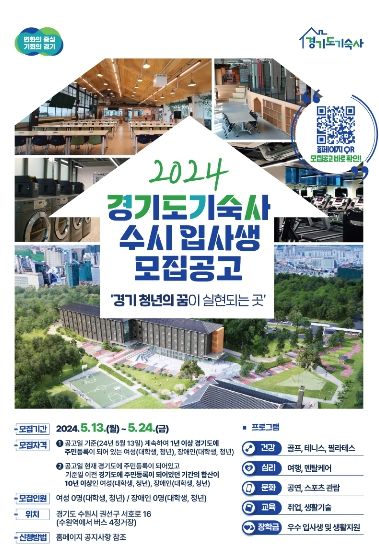 경기호연뉴스 민선기 기자 | 경기도기숙사가 여성 사실(私室)의 공실 발생으로 24일까지 수시모집을 진행한다.