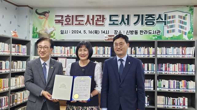 이날 기증식에는 이정문 국회의원과 이명우 국회도서관장, 박종갑 천안시의원을 비롯한 지역구 시·도의원들과 서혜경 한라도서관장 등 주민들이 모인 가운데 진행됐다.