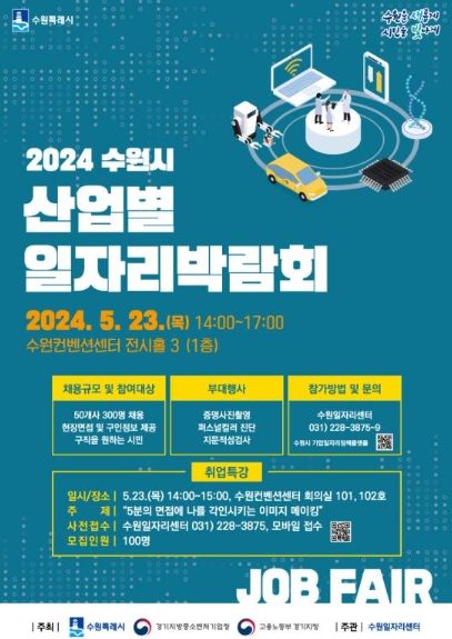 경기호연뉴스 민선기 기자 | 수원시가 5월 23일 오후 2시부터 5시까지 수원컨벤션센터 전시홀 3에서 ‘2024 수원시 산업별 일자리박람회’를 연다.