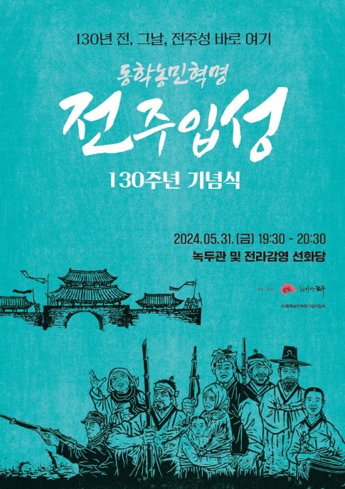 전주시가 주최하고 (사)동학농민혁명기념사업회가 주관하는 이번 행사는 ‘130년 전, 그날, 전주성 바로 여기’라는 슬로건으로 진행된다.