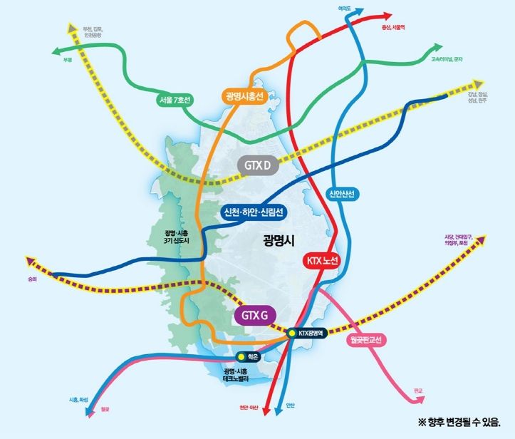 시는 이번 용역을 통해 국토교통부와 LH가 발표한 GTX D와 광명-시흥선, 경기도가 발표한 GTX G를 대상으로 시민 편익을 극대화할 수 있는 최적 경로와 역위치 등을 구체적으로 검토하여 국토부를 비롯한 관계기관에 제안할 예정이다. 경기도 철도기본계획에 반영된 신천~하안~신림선은 4개 지자체(광명, 시흥, 금천, 관악)가 시행한 용역 결과를 반영하기로 했다.