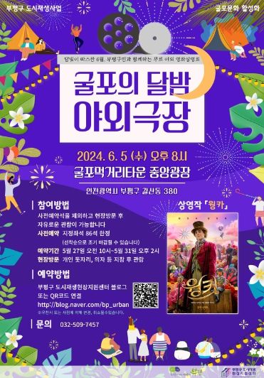 구 관계자는 “굴포먹거리타운에서 진행하는 굴포의 달밤 야외극장은 탁 트인 도심 속에서 낭만적인 시간을 선사할 예정이며, 구민들이 함께하여 즐거운 추억을 남기길 바란다”며, “앞으로도 다양한 문화행사를 열어 지역주민과 소통하고, 부평구 상권활성화를 위한 자리를 마련하겠다”다고 말했다.
