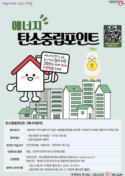 탄소중립포인트 에너지 분야 적립에 참여하려면 ‘탄소중립포인트 에너지’ 누리집을 이용하거나 양평군청 환경과 또는 읍․면사무소에 방문해 신청 가능하다.