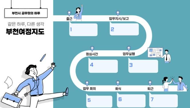 특히 조직문화 개선을 위해 시가 자체 개발한 ‘부천여정지도’는 하루 중 조직과 처음 상호작용하는 출근 순간부터 마무리하는 퇴근 시점까지의 경험을 도식화한 부천형 조직문화 개선 콘텐츠다. 직급과 세대별로 어떤 순간에 생각 차이가 벌어지는지 접점을 탐색하고 서로를 이해하는 것에 초점을 뒀으며, 직원들은 지도를 만들며 직접 조직에 관한 생각과 경험·구체적 실천 방안을 제시할 수 있다. 올해는 짧은 영상(숏폼) 형태로 실천안을 제작하기도 했다.