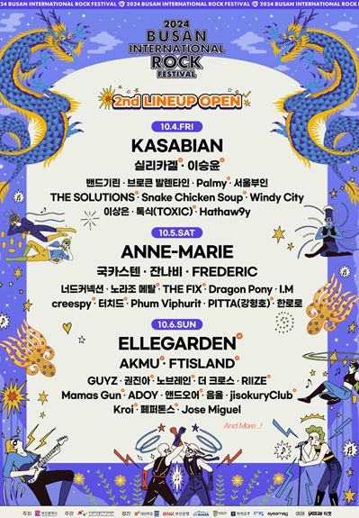 오늘 공개된 2차 출연진에는 ▲일본 펑크록을 대표하는 밴드인 '엘르가든(ELLEGARDEN)' ▲최근 스페인, 호주, 일본 등 전세계에서 종횡무진 활약하고 있는 '실리카겔(Silica Gel)' ▲데뷔 10주년을 맞이한 남매 듀오 '악뮤(AKMU)' ▲미국 그래미와 빌보드가 주목하는 실력파 보이그룹 '라이즈(RIIZE)' 등 화려한 아티스트들이 대거 포함돼 눈길을 끈다.