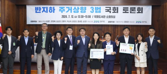 경기도는 12일 국회도서관 소회의실에서 김성중 경기도 행정1부지사, 염태영 의원 등 국회의원 8명, 민간 전문가, 시민단체 등과 비정상 거처인 반지하주택 거주민의 주거 상향을 위한 토론회를 열었다.