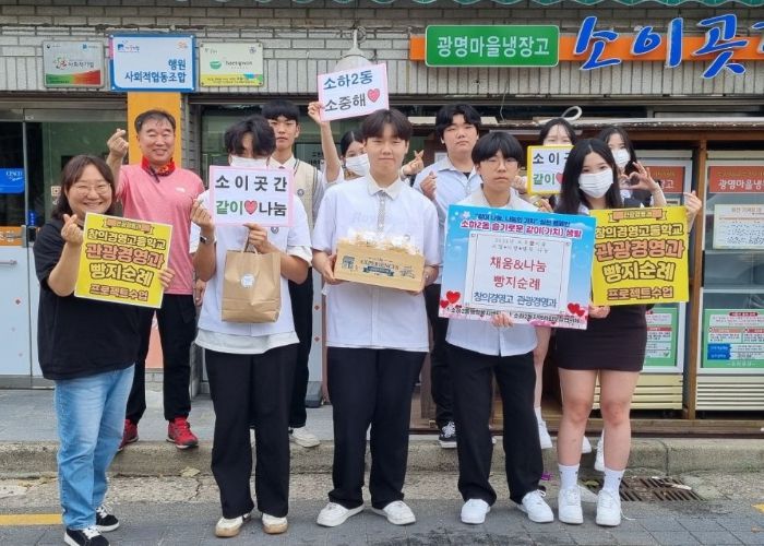 이날 행사에는 창의경영고등학교 관광경영과 2학년 학생들과 선생님 등 10여 명이 소이곳간을 방문해 제빵 시간에 만든 빵을 전달하는 자리였다. 학생들은 지난 2022년부터 소이곳간에 손수 만든 빵을 기부하기 시작했고 그 선행이 지역에 알려져 귀감이 됐다.