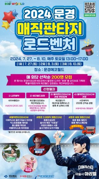 경기호연뉴스 민선기 기자 | 문경시는 오는 7월 27일부터 8월 3일, 8월 10일 총 3회에 걸쳐 문화 콘텐츠 테마파크인 문경 에코월드에서 '2024 문경 매직판타지 로드벤처'를 개최한다.