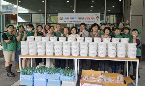 이날 행사는 1% 나눔 운동 후원사업의 하나로 새마을부녀회원들은 지역 어르신이 건강하게 여름나기를 기원하는 마음을 담아 전복삼계탕을 홀로 어르신들 150여 명에게 전달하면서 안부 인사를 전했다.