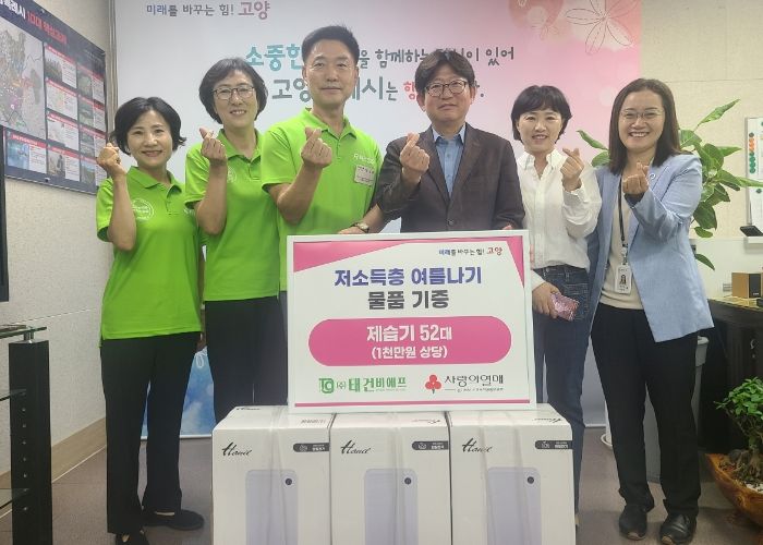 ㈜태건비에프에서는 장마철 저소득층의 여름나기를 위해 제습기 52대를 기부했다.