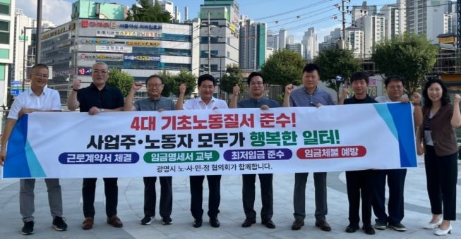 이날 캠페인에는 광명시를 비롯해 고용노동부 안양지청, 광명상공회의소, 한국노총 경기중부지역지부 등이 참여해 4대 기초노동질서인 ▲근로계약서 체결 ▲임금명세서 교부 ▲최저임금 준수 ▲임금체불 예방에 대해 홍보했다.