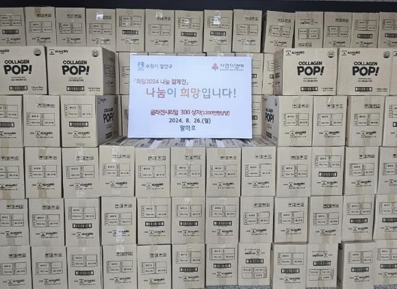이상수 장안구청장은 “콜라겐 시리얼을 기부해 주신 오덕진 알마로 대표께 깊이 감사드리며, 앞으로도 성숙한 기부 문화 조성을 위해 노력하겠다”고 전했다.