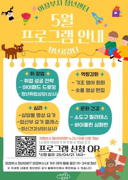 경기호연뉴스 민선기 기자 | 의정부시 청년센터 청년공감터가 4월 24일부터 5월 가정의 달 프로그램에 참여할 청년을 모집한다.