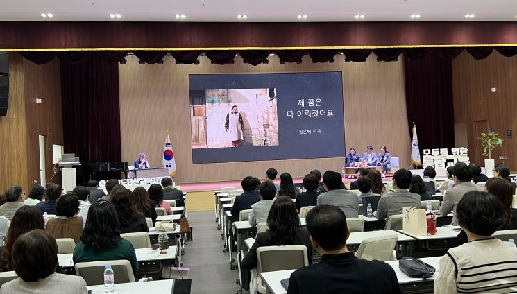 토크 콘서트는 ▲영화 ‘니얼굴’의 제작 배경, ▲정은혜 작가의 삶의 여정(영유아기-청소년기-성인기), ▲통합교육과 장애인의 인권, ▲통합교육의 필요성 및 가정·학교·지역사회의 역할, ▲참석자와 함께하는 질의응답 및 소통 순으로 진행됐다.