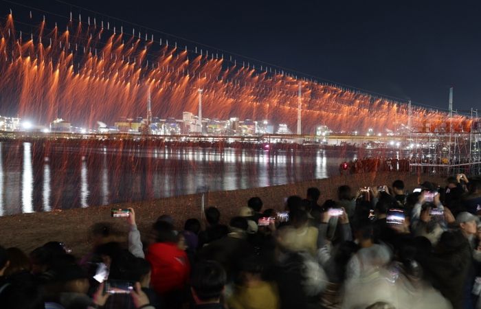 이번 낙화놀이는 전북 무주 두문마을의 전통 불꽃놀이 방식을 도입한 것으로, 숯가루와 소금, 쑥향을 섞어 만든 불씨를 활용해 고유의 전통미를 현대적으로 재해석했다.
