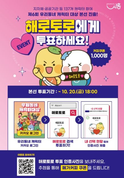 투표는 누구나 쉽고 빠르게 할 수 있다. ‘우리동네 캐릭터’ 누리집에 접속해 카카오 로그인만 하면 된다. 1인 1회, 최대 3개의 캐릭터에게 투표할 수 있으며, 투표는 10월 20일 18시까지 진행된다.