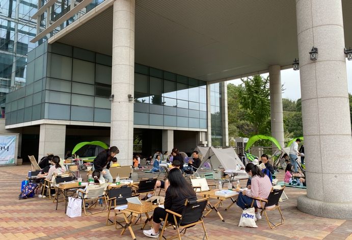 시민들은 도서관 앞 야외마당에 설치된 북 텐트, 해먹, 파라솔 테이블 등의 다채로운 좌석에서 저마다 가장 편한 자세를 취하고 마치 캠핑이나 소풍을 온 듯 가족들과 책을 읽었다.