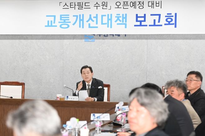 수원시가 20일 시청 상황실에서 연 ‘스타필드 수원 오픈 예정 대비 교통개선대책 보고회’를 주재한 이재준 시장은 “교통혼잡에 대비해 적극적으로 교통개선 대책을 마련한 스타필드 수원에 감사드린다”며 “혼잡이 예상되는 곳곳에 CCTV를 설치해 교통상황을 모니터링하고, 문제가 발생하면 즉시 현장 안내요원에게 연락해 신속하게 대처하길 바란다”고 밝혔다.