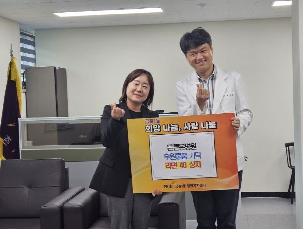 경기호연뉴스 김대엽 기자 | 파주시 금촌1동은 지난 22일 금촌튼튼본의원에서 라면 40박스를 기탁 받았다고 밝혔다.